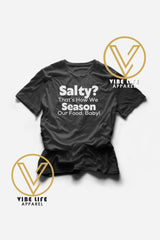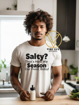 Spice up your wardrobe with this "Salty? That's How We Season Our Food!" tee. We ain't afraid of a little flavor, honey. This ain't shade, it's the truth – we bring the sass and the class.