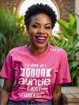 Give your favorite Auntie this fun gift of our Good Auntie - I Just Cuss tee. This soft and clean designed t-shirt is sure to become her new favorite item. Don't wait, get it now!